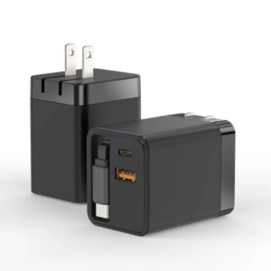Retractable Wall Charger GaN 40W PD Fast USB C Charger with Retractable Type-C Cable for Mobile Phone Laptop Tablet