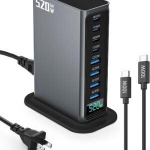 Samsung charger for iphone 520W USB C Charger Block, 8 Ports GaN Fast Charging Station Hub, PD 100w Type C & USB A Laptop Desktop Charger Adapter for MacBook Air/Pro, DELL, iPhone, iPad, Samsung