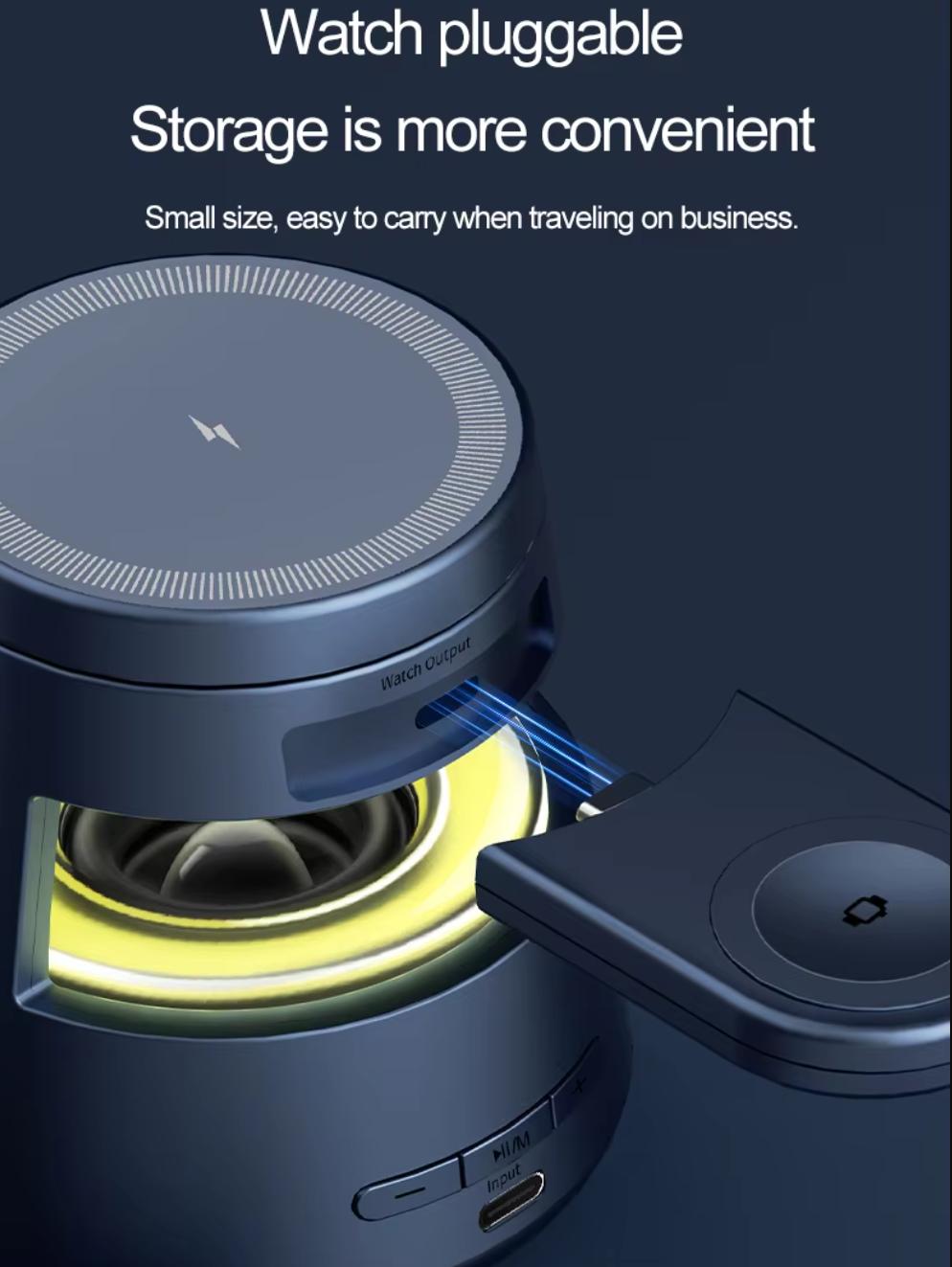 5 in 1 Charging Station,Magnetic Wireless Charger with Night Light & Speaker for Apple MagSafe Charger Stand,Foldable Nightstand Charging Station for iPhone,Airpods,Watch