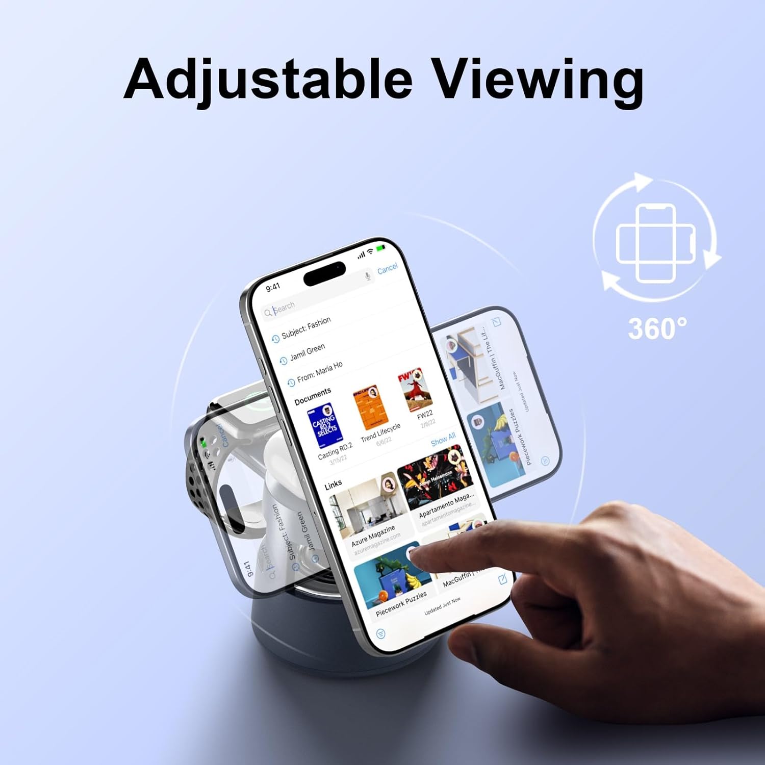 - 【Versatile Usage】 Not only does our charging station provide a convenient solution for charging your devices, but it also doubles as an adjustable stand for your iPhone. Whether you enjoy watching videos, making calls, or using your phone in landscape or portrait mode, this charger provides the flexibility you need.The anti-slip design ensures stability and safety while charging.