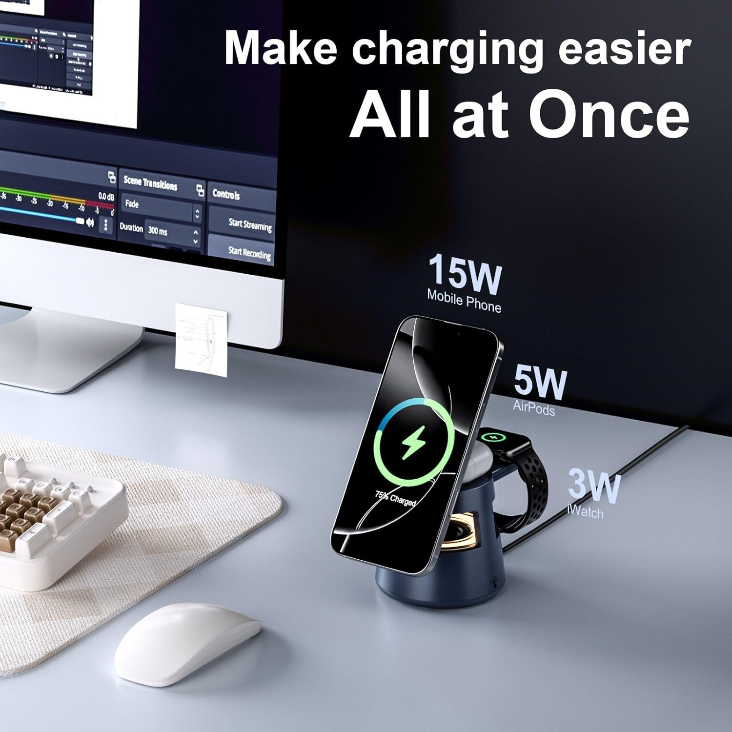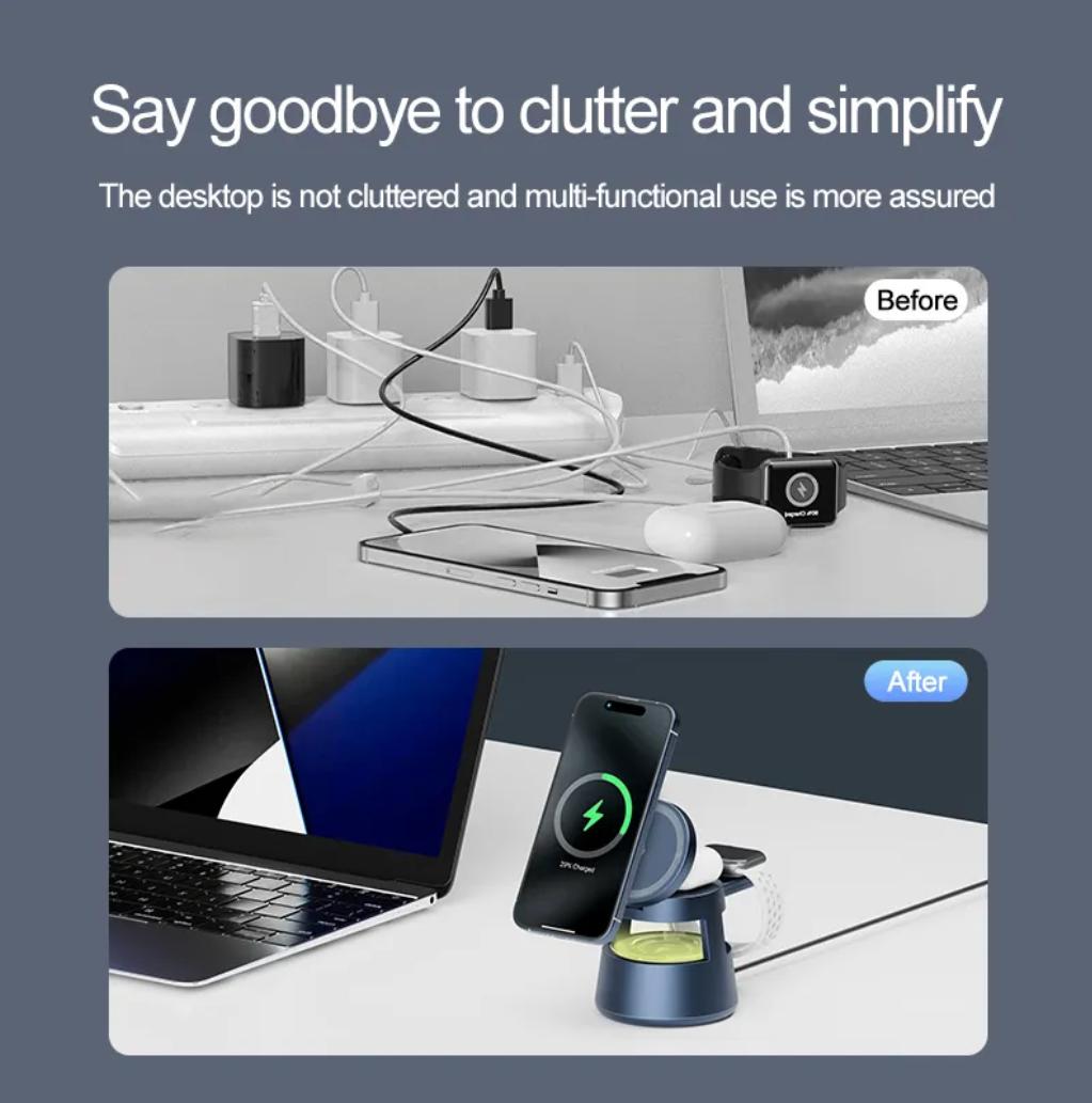 - 【5 in 1 Exclusively for Apple】 A one-stop iOS Standby wireless charging solution for your iPhone, Apple Watch, and AirPods. Whether you’re at home, in the office, traveling, or in a meeting room, this sleek and stylish charger keeps your space organized and clutter-free.